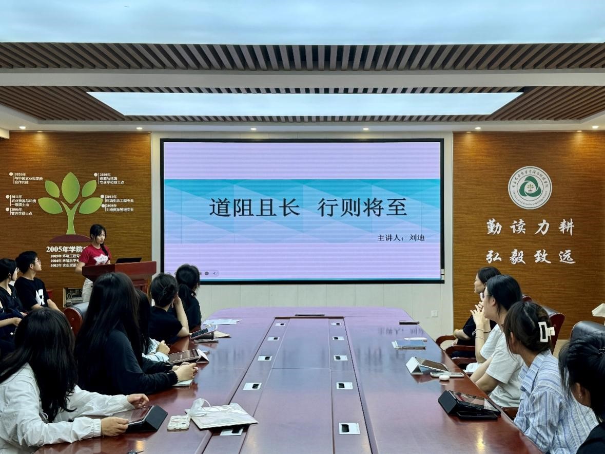 刘迪以《道阻且长,行则将至》为主题,分别从入党、学习、考研以及社会实践和科研竞赛展开分享,向大家提出以下建议:第一,重视英语和数学相关学科的学习,在日常学习中打好基础;第二,制定合理的学习计划;第三,要在良好的学习氛围里学习,减轻外部环境对自身的干扰;第四,提高专注力,确保高效自律;最后,要早点进入实验室开展科研项目,争取成为项目负责人。除此之外,她还号召大家积极参与社会实践活动以及各类学科竞赛,并分享了自己在考研备考以及复试方面的相关经验。