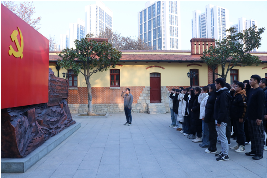 “我宣誓,我志愿加入中国共产党,拥护党的纲领,遵守党的章程,履行党员义务.....”参观结束后,在研究生党员王东的带领下,全体党员在宣誓广场面对党旗庄严宣誓,表达自己对党的忠诚,为党的事业奋斗终身的信心和决心。