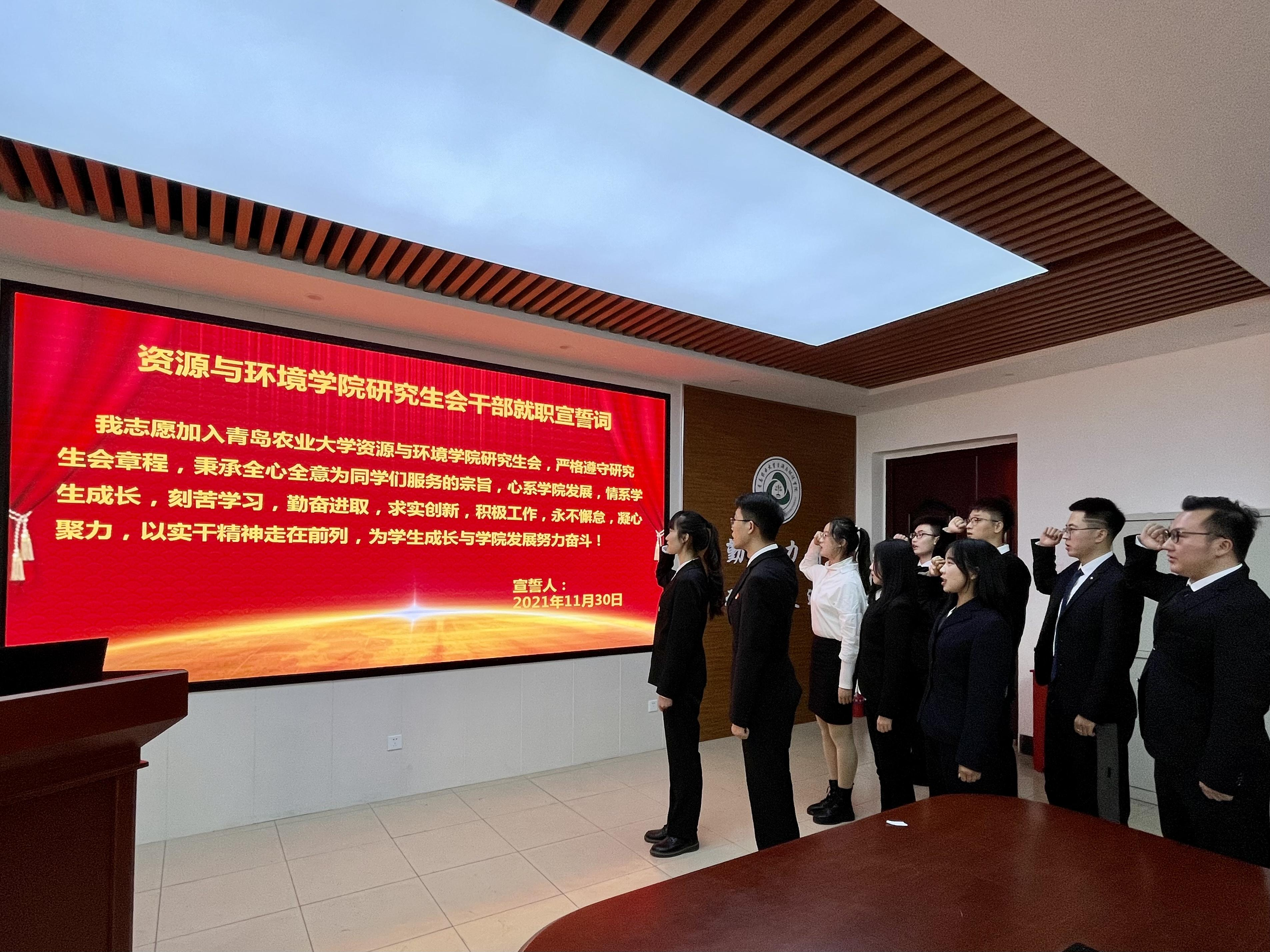 大会在庄严的国歌声中拉开序幕,全体起立,奏唱国歌。礼毕后,刘明阳代表上一届研究生会从工作总结、工作思考和工作交接三个部分进行了整体汇报,并寄语新一届研究生会更好地发挥作用,为公司和研究生做好各项服务工作。会上,林英为2020-2021学年公司研究生会干部颁发荣誉证书;其后,宁刚宣读了新一届研究生会成员名单;随后,张赢心、马洪斌代表新一届研究生会发言,并带领新任职的研究生会成员现场宣誓。