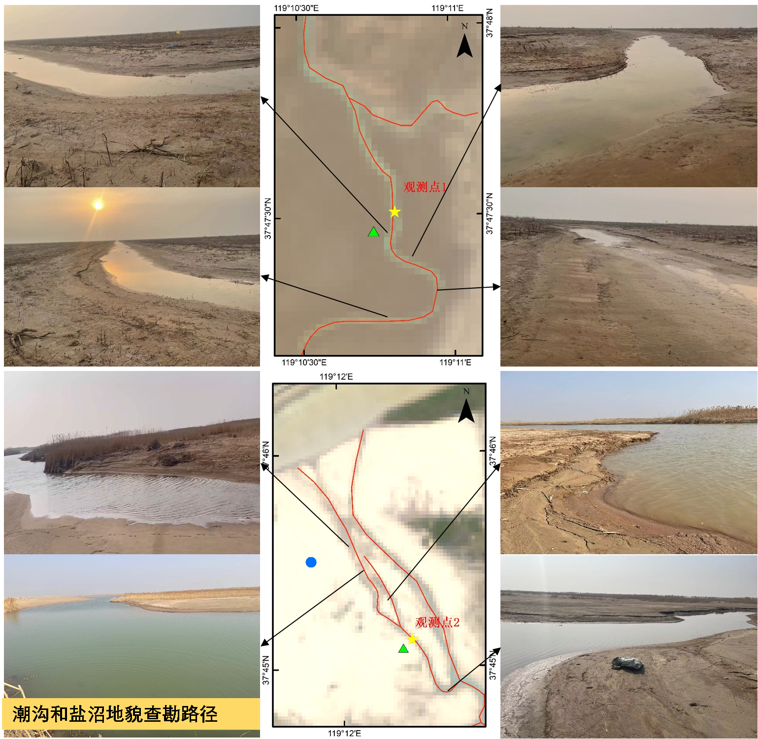 黄河三角洲简称黄三角,地处山东省东北部滨海地区,南靠莱州湾,北依渤海湾,是我国暖温带最广阔、最年轻的滨海湿地,也是世界上最活跃的三角洲之一。由于大量泥沙淤积,黄三角海岸线不断外移,潮滩范围不断扩大,并形成大量潮沟。潮滩是海陆交互作用的前沿地带,而潮沟是潮滩与外界海域进行物质、能量、信息交换的重要通道。因此,开展黄三角潮滩地貌侵蚀过程和植被-水-沙交互作用研究,对于深入认识滨海湿地生态系统变化机制具有重要意义,同时可为黄河口潮滩湿地生态调控策略的制定提供理论支持。