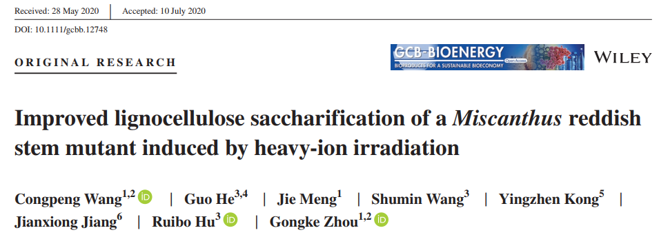 该研究以Improved lignocellulose saccharification of a Miscanthus mutant induced by heavy-ion irradiation和Miscanthus: a fast-growing crop for environmental remediation and biofuel production为题目相继在Global Change Biology & Bioenergy(JCR一区,IF:5.316)期刊上发表。