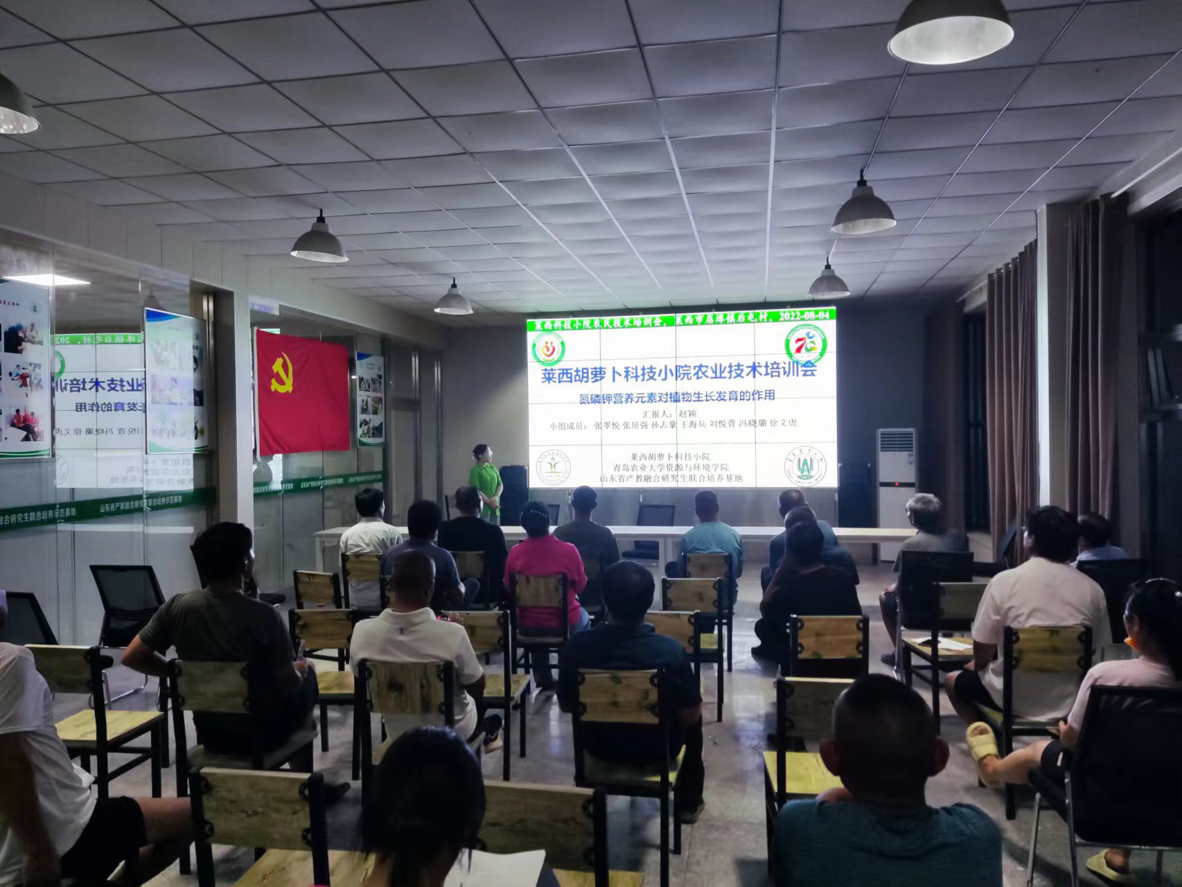 2022年8月4日晚,三亿体育莱西胡萝卜科技小院与店埠镇政府联合开展的店埠镇南部管区党员夜课堂技术培训会,在山东省产教融合研究生联合培养示范基地举行,店埠镇后屯村、朴木新村等党员干部参与了此次夜课堂。