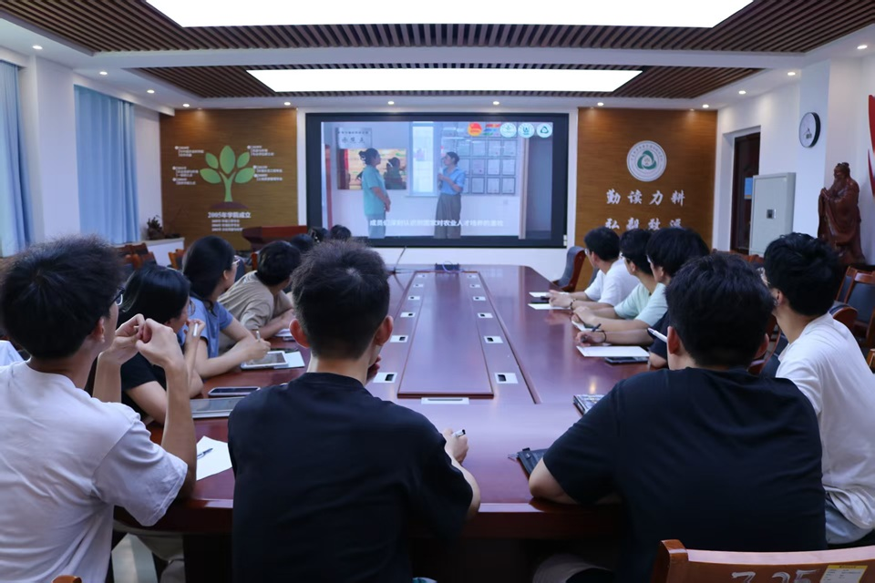 公司往届社会实践优秀团队代表董雅宁,就如何做好社会实践进行经验分享。她从队伍任务分配、资源利用、图文视频素材整理、新闻媒体投稿宣传等多方面分享了自己在社会实践中的经验心得,并在交流答疑环节对活动策划、团队管理、资源获取等方面的问题进行了耐心解答。