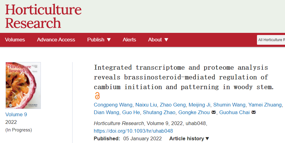 维管植物茎的次生生长历经维管形成层起始、细胞分裂、韧皮部/木质部分化和次生木质部加厚等过程,涉及到一个复杂的调控网络。油菜素内酯(BR)是一类重要的植物类固醇激素,在植物的生长和发育中发挥着关键作用,但人们对木本植物调控茎形成层的发育和次生生长过程的分子机制还尚不清楚。