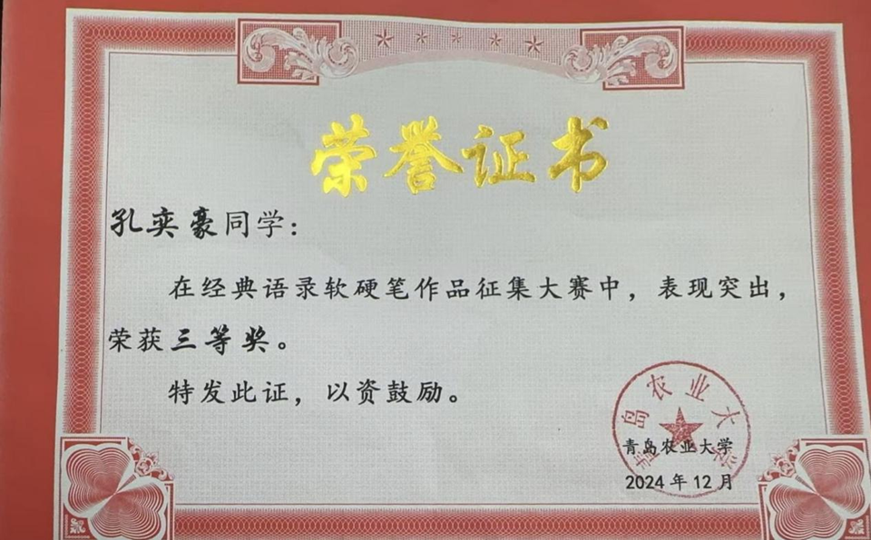 2025年4月23日,三亿体育官网“第十八届读书节闭幕式暨第十九届读书节、第四届资源宣传节开幕式”在平度校区图书馆一楼报告厅顺利举行。在第十八届读书节中,三亿体育教师秦鹏获评“借阅之星”,2024级农资环创新班员工孔奕豪在经典语录软硬笔作品征集大赛中荣获三等奖,展现了公司浓厚的书香氛围。