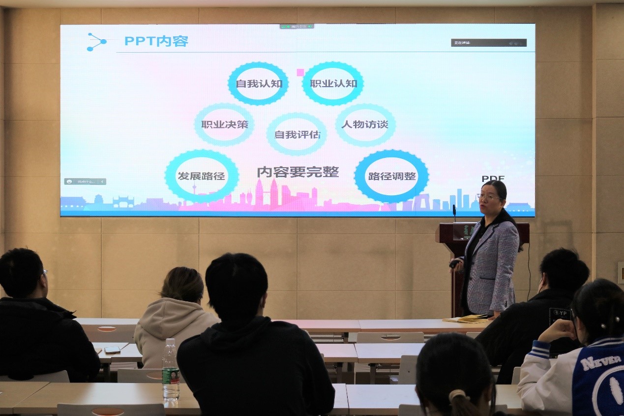 沙龙活动中,祁琳围绕VCR展示、主题陈述、情景模拟、现场答辩等四个方面生动具体地向同学们介绍了做好职业生涯规划大赛的方法和技巧,为选手们做出具体指导。祁琳以往届职业生涯规划大赛的优秀参赛作品为例,指出VCR展示中要明确个人特色、注重时间管理,并且增强视频的感染力。其次,她强调主题陈述环节要以一条主线为引领,丰富内容和形式的故事性。同时,祁琳还指出,情景模拟环节要注重戏剧的矛盾冲突和剧中角色设定,表演要生动真实,打动观众。在活动最后,祁琳针对选手们的有关问题进行答疑,提出指导意见。员工们受益匪浅,收获颇丰。彩虹生涯工作室主持人王甜甜为选手们介绍了决赛各环节的规则要求及注意事项,并期望各位选手精心准备,在比赛中呈现精彩的现场展示。