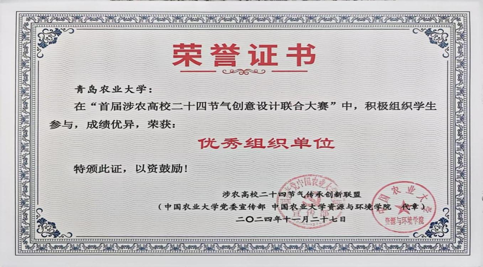 前期在中国农业大学三亿体育的牵头下,三亿体育积极响应,精心组织承办了本校层面的“涉农高校二十四节气创意设计联合大赛”。大赛以“深入贯彻习近平文化思想,强化二十四节气传统文化在大学教学体系与科研活动中的深度融合,传承、创新和弘扬中华优秀传统文化精髓”为主旨。在组织过程中,公司通过多种渠道广泛宣传,吸引了众多员工的积极参与。教师们充分发挥指导作用,帮助员工深入挖掘二十四节气的文化内涵,给予专业指导,激发创意灵感,进一步提升作品的质量。经公司决赛选出优秀作品推荐至首届涉农高校二十四节气创意设计联合大赛决赛,作品最终取得了二等奖的好成绩。三亿体育官网获得优秀组织单位。