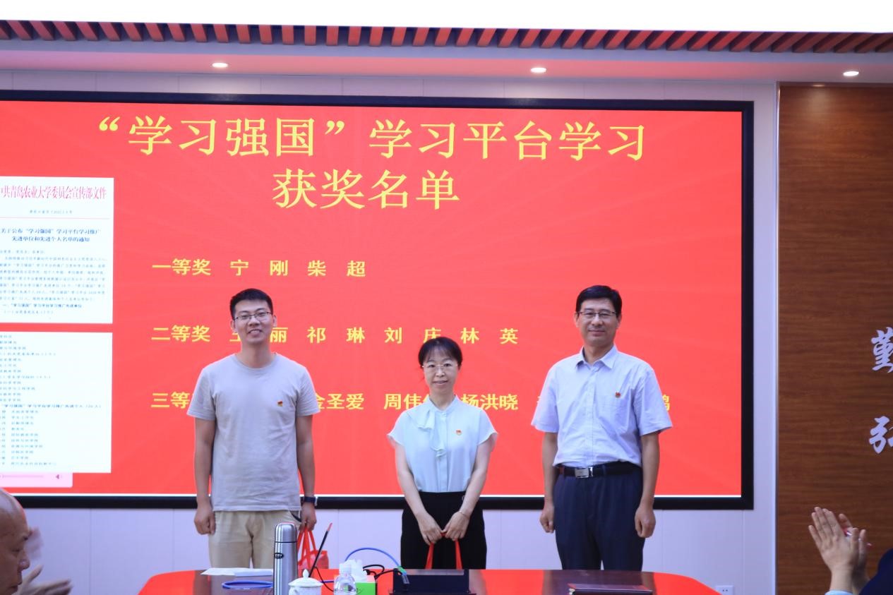 伴随着热烈的掌声,郭德明、史越清、崔德杰为在党史学习教育学习交流、习近平总书记“涉农回信”精神学习交流、政治理论学习笔记、“学习强国”学习平台和公司“颂歌献给党”教职工红歌比赛五个方面表现突出的先进个人颁奖,勉励他们珍惜荣誉、再接再厉,立足新起点,再创新业绩。