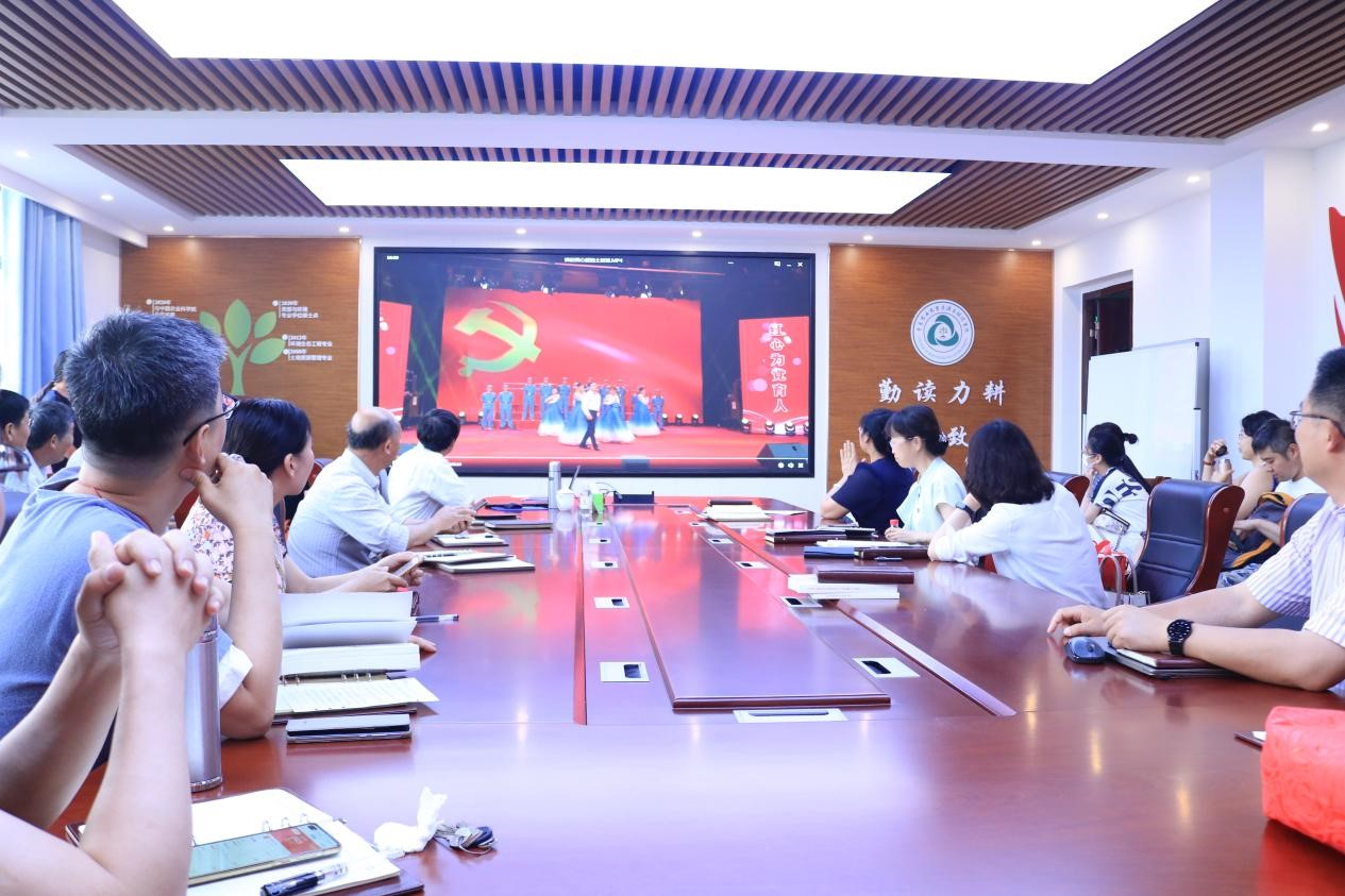 最后,全体教职工起立共同合唱《没有中国共产党就没有新中国》,用自己的歌声抒发着爱党爱国情怀,歌颂党和祖国的繁荣昌盛,表达了全体教职工不断奋斗的决心,坚定了听党话、跟党走的信心和决心。