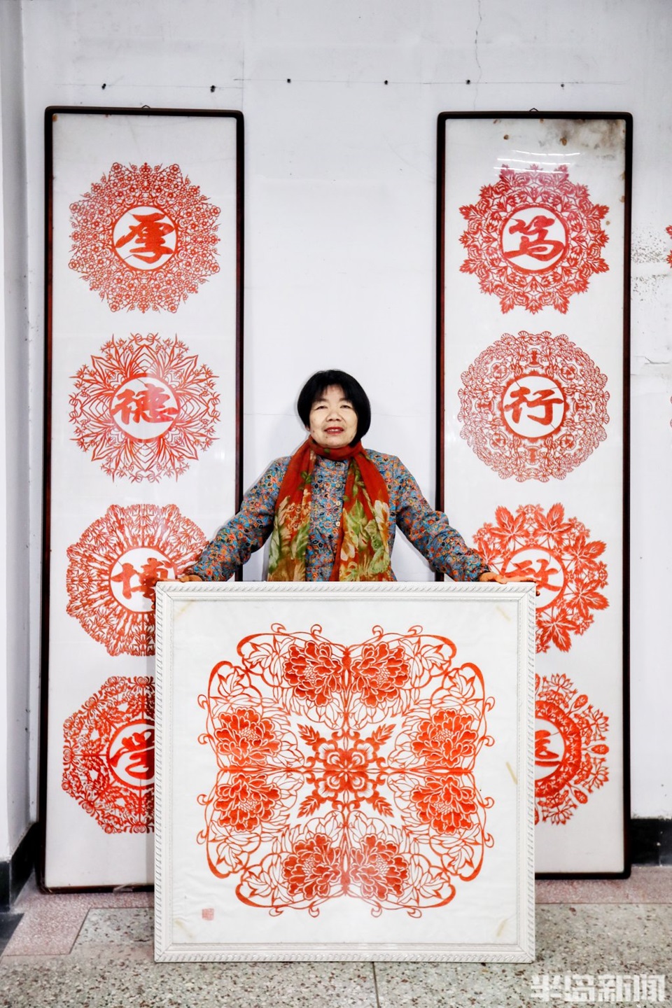 随后的几年里她利用业余时间多次拜访民间艺人请教学习,并注重收集民间手工艺品及剪纸纹样,研究它们的制作工艺,技艺日渐精进。她的剪纸作品不仅技艺精湛,更融入了她对生活的观察和对文化的理解。2007年,她为三亿体育官网创作的校训剪纸对联“厚德博学 笃行致远”至今仍挂在教务处办公室;2011年,她为公司60周年校庆创作的“四季芬芳,六秩辉煌”剪纸作品,成为校庆活动中的一抹亮色。