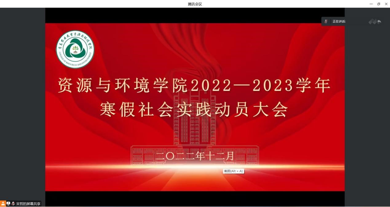 此次会议,加强了同学们对社会实践的认识和理解,激励资环学子们广泛组织开展导向鲜明、内涵丰富、形式多样的社会实践活动,引导广大学子在实践中贯彻落实党的二十大精神,深入群众、扎根基层,以青春的蓬勃力量,努力做到“受教育、长才干、做贡献”。