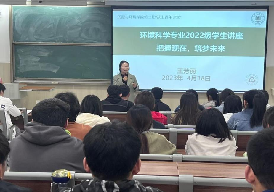 王芳丽以“把握现在,筑梦未来”为题,结合自身成长经历,语重心长地告诉同学们要树立正确且积极的学习观,专业观和职业观。她首先指出,环境科学专业是一个有责任有前途的专业,在国家利好政策的有力推动下,行业发展前景广阔。对于未来能够从事的就业选择去向,她以往届毕业生就业为例,为同学们分析了专业前景和就业方向,启发了同学们的就业意识。其次,在专业认知层面,她运用思维导图清晰地向同学们展现出专业关键信息,介绍了农业面源污染与环境治理的知识,拓宽了同学们的专业视野,激发了专业学习兴趣,巩固了专业学习思想。随后,她结合专业特色、培养方案,建议同学们在学习过程中早做规划,打好基础,全面提高自身素质;鼓励同学们要勤于学习,培养科研兴趣和能力,争取深造,实现更好的职业发展;最后,她强调指出,作为一名资环人,应该要树立学科自信和家国情怀,要掌握扎实的专业学识能力,为祖国的绿水青山事业,做出自己的积极努力,成为致力于国家生态环保事业的高素质专业人才。