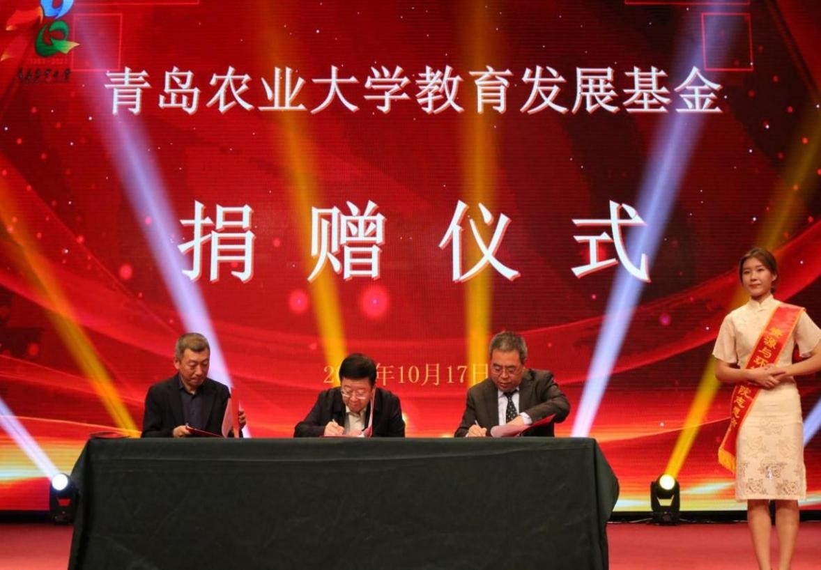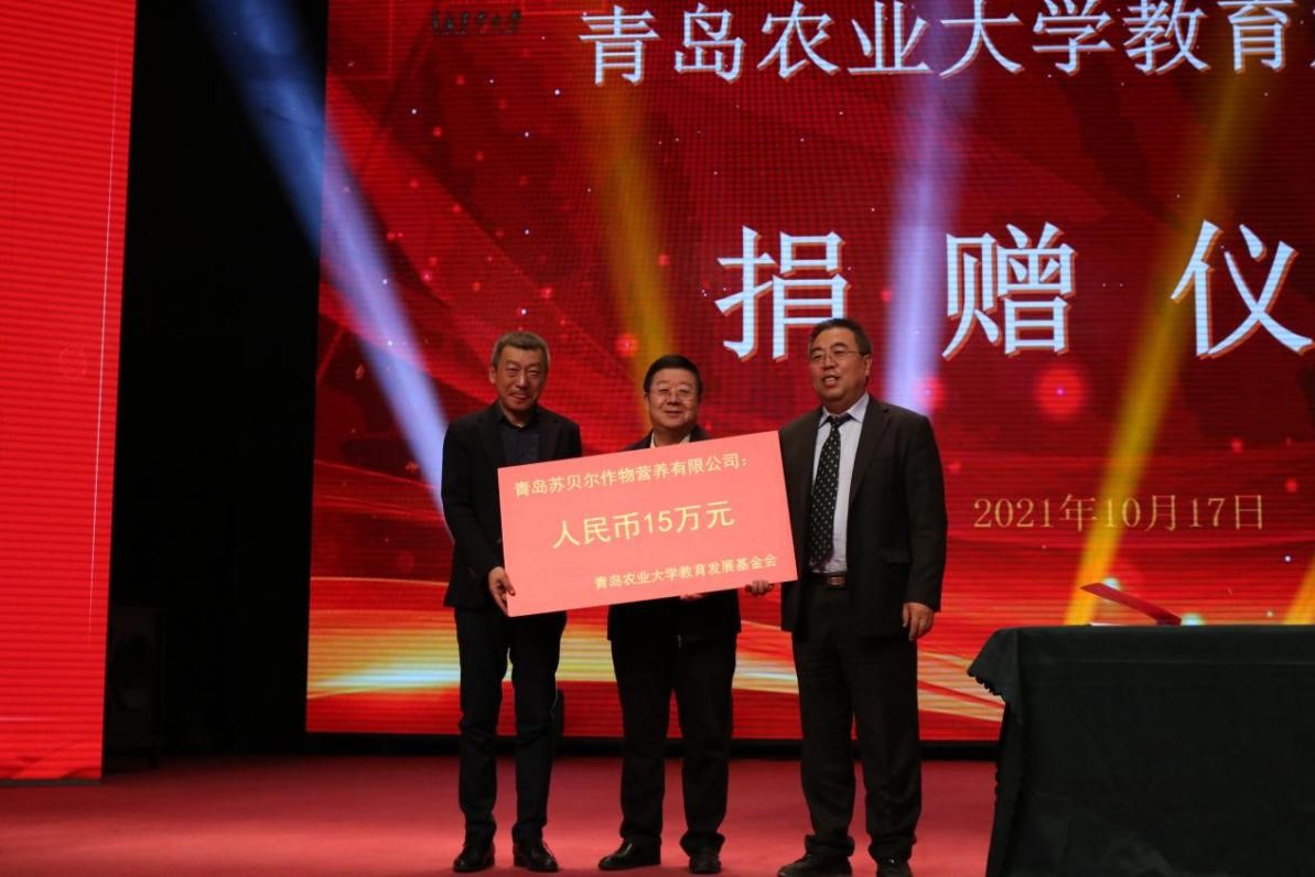 今年是建校70周年,同时也是07级员工毕业十周年,庆典仪式上青岛苏贝尔作物营养有限公司向公司捐赠15万元。向公司捐款的员工企业还有:五洲丰农业科技有限公司捐赠120万元;青岛和协生物科技有限公司捐赠50万元;内蒙古紫牛生物科技有限公司和山东小满循环农业科技有限公司捐赠30万元;青岛柏森环保工程有限公司捐赠20万元;青岛三农富康肥料有限公捐赠20万元;山东洁衍特检测有限公司捐赠20万元。