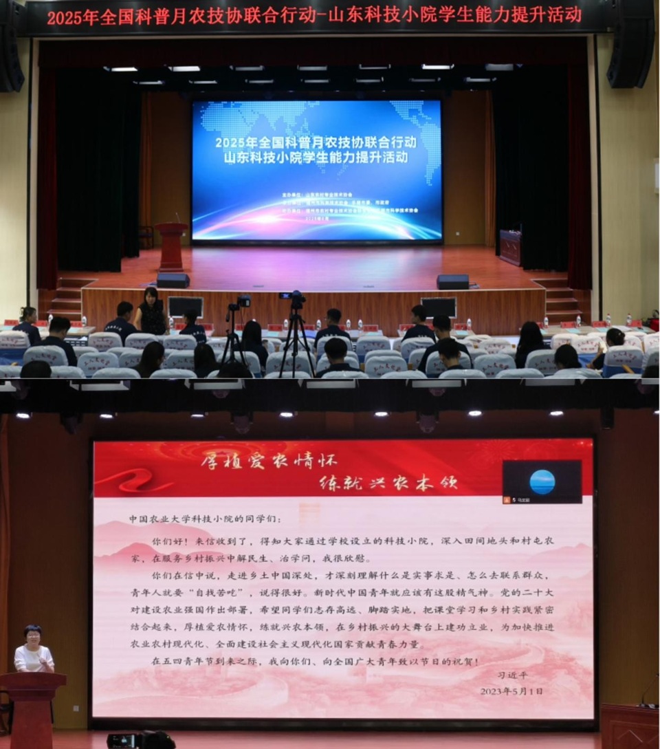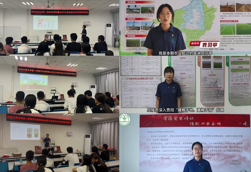 8月5日上午,实践团在乐陵市工人文化馆多功能厅参加了“2025年全国科普月农技协联合行动—山东科技小院员工能力提升”活动,现场聆听了陈延玲老师等“科技小院”首席专家作的精彩报告。这一实践环节,既拓宽了队员们的专业视野和思维,也深化了知农爱农的情怀,更加深刻地认识到强农兴农的使命感。