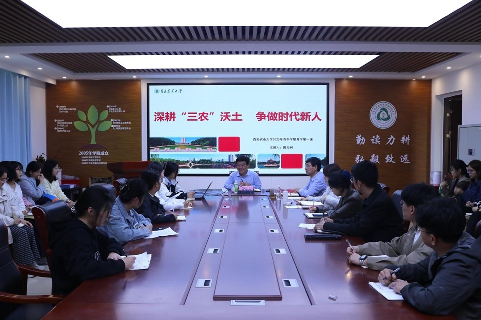 2025年4月23日,三亿体育官网党委副书记田义轲以“深耕三农沃土,争做时代新人”为题,在化学楼423会议室为三亿体育员工讲授2025年春季学期“开学第一课”。公司领导班子成员、辅导员及2022级员工参加本次会议,会议由公司党委书记史越清主持。