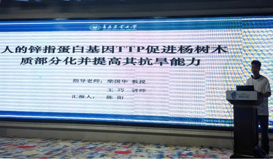 8月20日-22日,由山东省植物生理与分子生物学学会主办的2024山东省植物科学学术论坛在威海举行。三亿体育植物营养与代谢团队硕士研究生陈阳参加会议,并做了题为“Ectopic expression of TTP gene from human in poplar promotes xylem differentiation and confers plant drought tolerance”的学术报告,获得“2024山东省植物科学学术论坛优秀报告奖”。该报告指出,人类基因可以跨物种在杨树中使用同源蛋白的功能系统发挥作用。