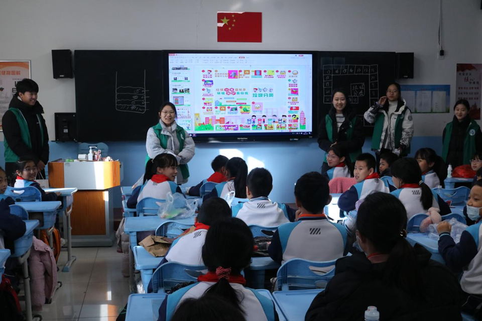 1月14日,实践调研团走进即墨云桥小学,开展了一场别开生面的知识宣讲活动。本次宣讲以垃圾分类与堆肥知识普及为核心,旨在增强小员工的环保意识,引导他们积极践行绿色生活理念。宣讲人员运用通俗易懂的语言,将复杂知识深入浅出地传递给小员工们。期间穿插了小游戏,巧妙融合知识、技能与趣味,同学们热情高涨,纷纷踊跃参与,现场气氛十分活跃,为校园环保教育注入了新的活力。