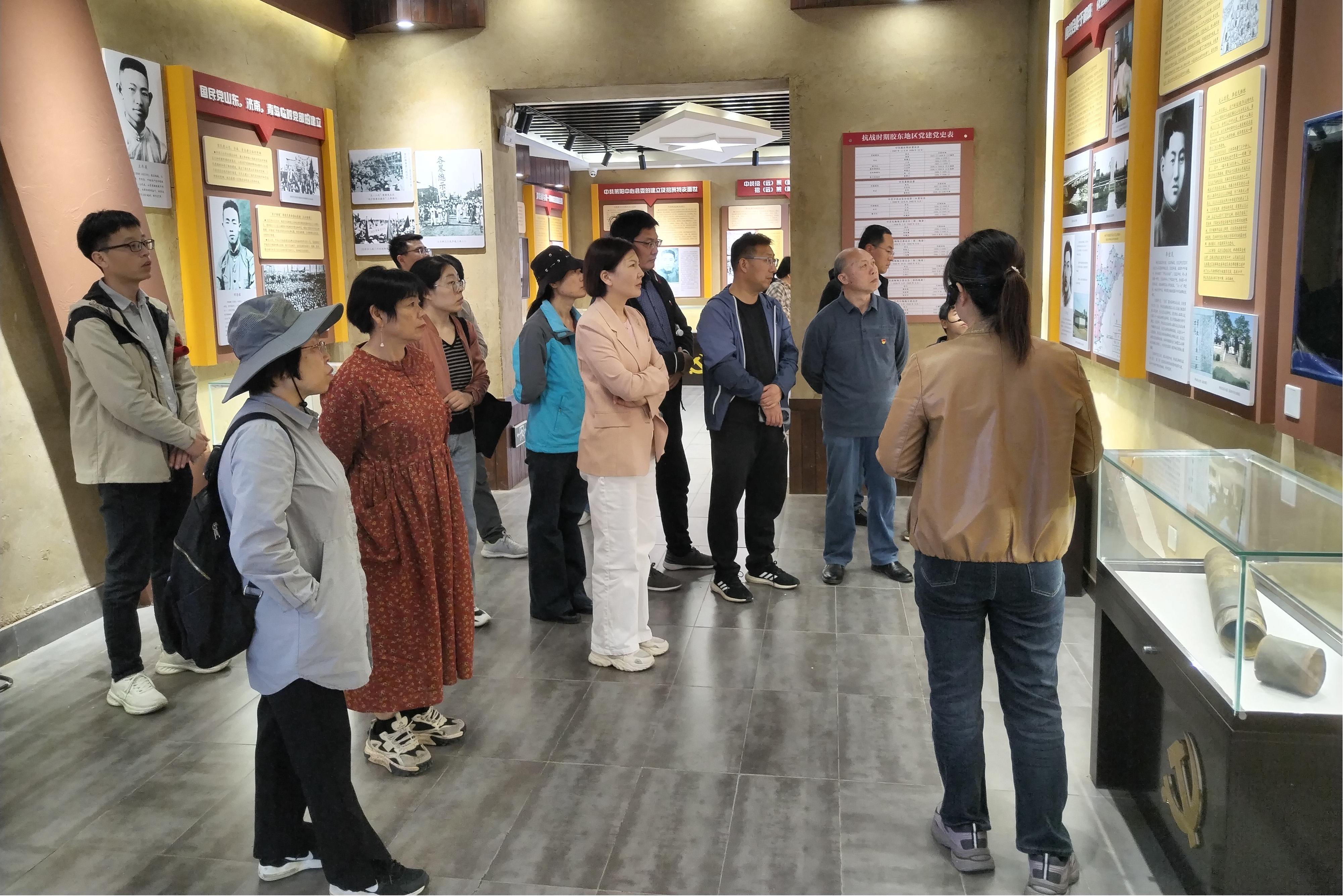 在专业讲解员的导览下,党员们参观了河崖红色教育基地的各个展区。展区内丰富的历史图片、文献资料以及实物陈列,栩栩如生地还原了革命年代的艰辛历程。党员们认真听取讲解,不时交流感悟,对革命先烈的无私奉献和坚定信念表示了深深的敬意。在“勤政厅”的入口处,一块刻有“正衣冠”的镜面吸引了大家的目光,它提醒着党员应始终保持端正的仪表和廉洁自守的态度。随后,党员们来到“八路胡同”,参观了胶东行署旧址、新华书店旧址和烈士故居,,进一步加深了对党的历史和革命精神的理解。