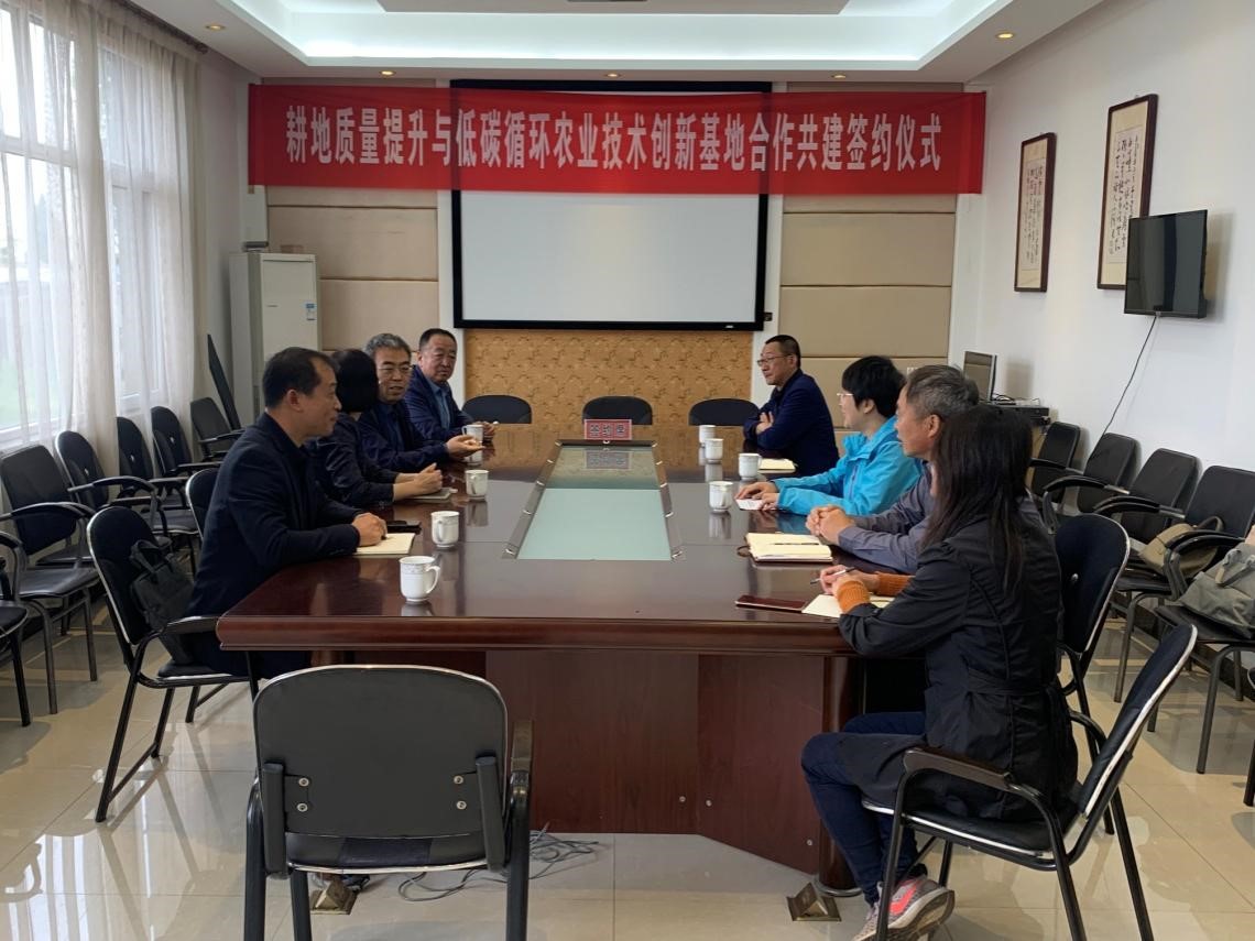 签约仪式结束后,校、地、企三方代表进行了青岛市耕地质量提升与低碳循环农业技术创新基地发展座谈会,确定了青岛市耕地质量提升与低碳循环农业技术创新基地发展方向、中长期发展规划、近年工作重点,为基地建设和发展指明了方向。会后考察了三方合作试验示范基地,小麦长势喜人。
