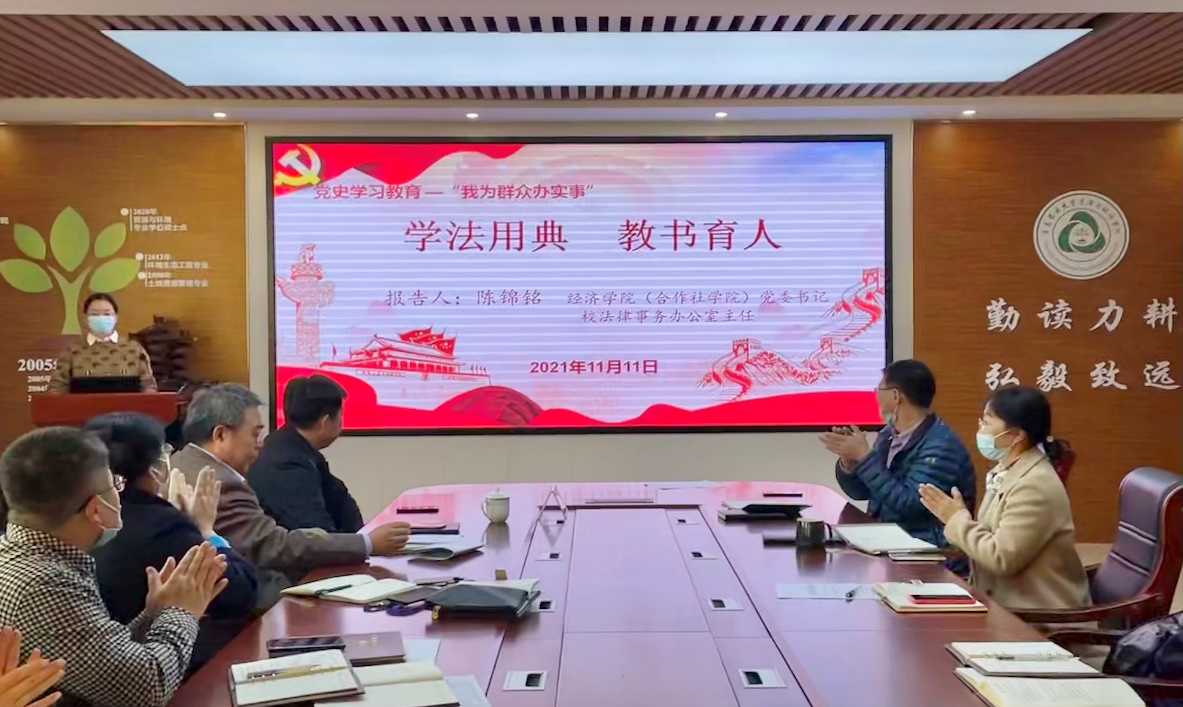 自党史学习教育开展以来,公司党委积极组织开展“我为群众办实事”系列活动。今年是《民法典》正式实施之年,为提升教职工们的法律意识,更好地在教书育人中维护老师和员工的权利,公司邀请经济公司(合作社公司)党委书记、校法律事务办公室主任陈锦铭为公司教职工开展“学法用典,教书育人讲座”。讲座于11月11日在化学楼423会议室展开,由公司党委书记史越清主持,全体教职工参加。