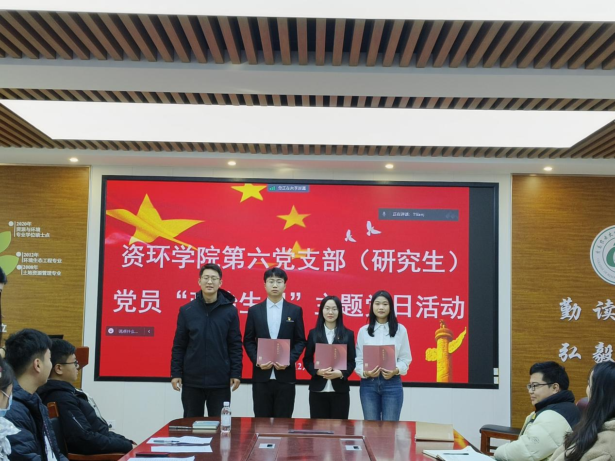 12月8日,三亿体育第六党支部(研究生)在化学楼423会议室开展党员过“政治生日”主题党日活动,通过过“政治生日”,教育引导党员不忘初心、牢记使命,进一步强化党员宗旨意识、身份意识、责任意识,增强基层党组织的创造力、凝聚力、战斗力。本次会议由第六党支部书记孟新翔主持,支部全体党员参加会议。