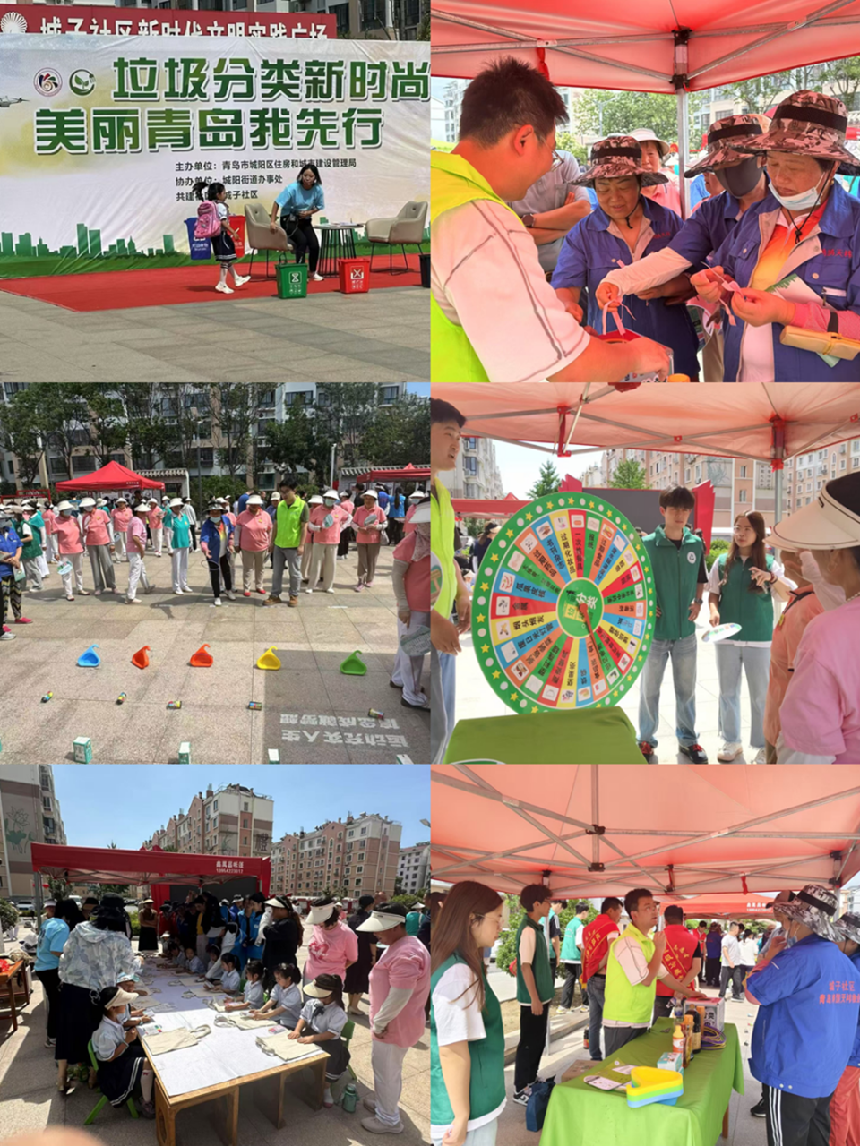 7月17日,实践团前往城子社区新时代文明广场,开展以“垃圾分类新风尚,美丽青岛我先行”为主题的垃圾分类活动。活动现场,志愿者们利用四分类垃圾示例牌演示垃圾分类要点,发放宣传材料,设置垃圾分类转盘游戏和套圈赢礼互动环节,普及垃圾分类政策与知识。同时,志愿者还指导社区幼儿园小朋友绘制以垃圾分类和低碳循环为主题的环保布袋,倡导减少一次性制品的使用,让生态文明与绿色发展理念植根在孩子们心中,充分发挥“一个孩子带动一个家庭”的积极作用,引领全民践行低碳生活新风尚。