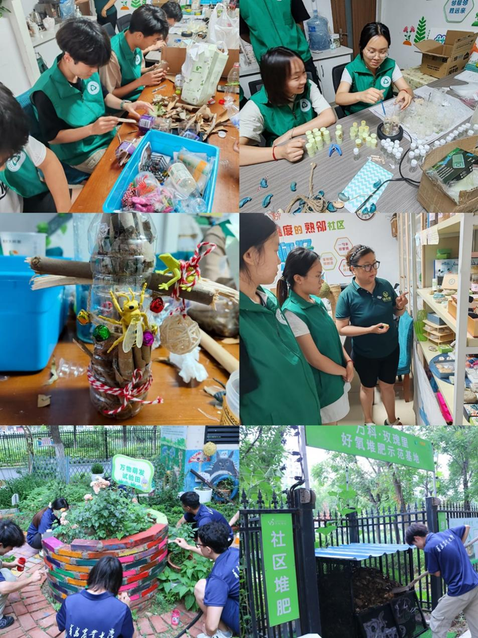 7月19-20日,实践团走进城阳玫瑰里社区开展“绿动社区,自然共生”生态微改造行动。活动中,团队成员们分工协作,通过收集枯枝落叶、塑料瓶、废纸壳等素材,充分发挥创意制作了生态鸟窝和昆虫屋。制作完成后,团队成员们参观了环保酵素、环保手工皂、咖啡渣创意画、厨余落叶联合堆肥发酵土等环保产出产品,深入学习环保循环相关知识。此外,为丰富社区生物多样性和提升堆肥实操能力,同学们还精心装饰零废弃花园并走进堆肥基地参与有机废弃物堆肥实操等活动,为社区生态建设注入新的活力。