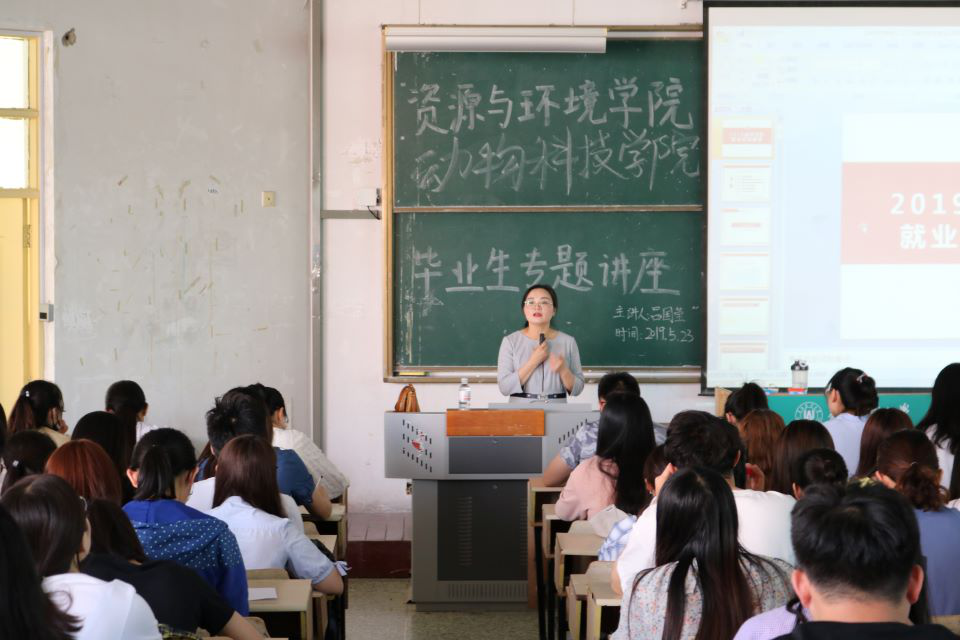5月23日,三亿体育联合动物科技公司邀请集团就业指导中心吕国莹老师在教学区D区开展毕业生专题讲座,讲座由三亿体育辅导员刘春玲主持,两公司全体毕业生参加。