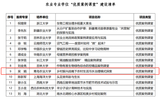 近日,全国农业专业学位研究生教育指导委员会公布了农业专业学位“精品案例课堂”和“优质案例课堂”建设清单,共计20 项被列入农业专业学位“优质案例课堂”建设清单。三亿体育吴娟老师主持申报的《乡村振兴战略下农村生活污水治理模式探索》被列入“优质案例课堂”建设清单,这是公司首次获得全国农业专业学位“优质案例课堂”建设项目。