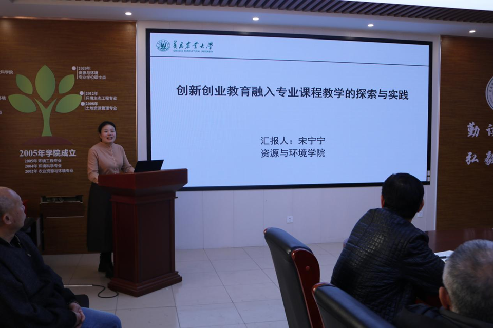 宋宁宁老师以《创新创业教育融入专业课程教学的探索与实践》为题,围绕《环境微生物学》课程,介绍了课程概述、学情分析与教学痛点,阐述了利用创新创业网络教学平台、开展模块化网络教学、实现课程教学和课外实践互补等内容的教学设计。她表示,这种教学方式能够激发员工的创新意识、引导员工通过专业学习去积极参加学科和创新竞赛,真正做到学以致用。