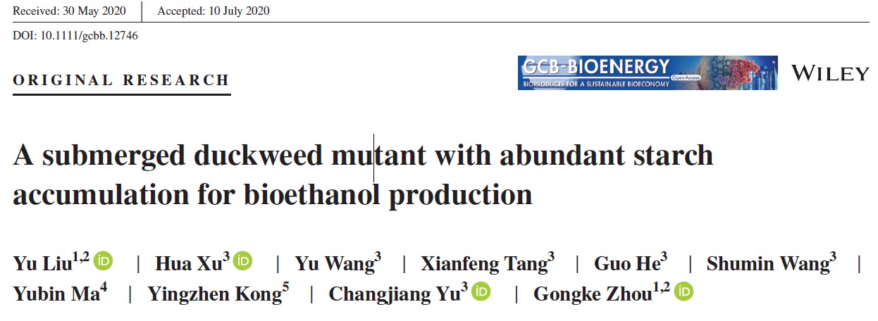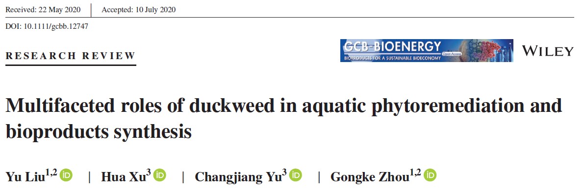 近日,三亿体育周功克教授团队在浮萍污水处理及资源化利用方面取得重要进展。两项成果Multifaceted roles of duckweed in aquatic phytoremediation and bioproducts synthesis和A submerged duckweed mutant with abundant starch accumulation for bioethanol production相继发表在Global Change Biology & Bioenergy(IF:5.316)上。
