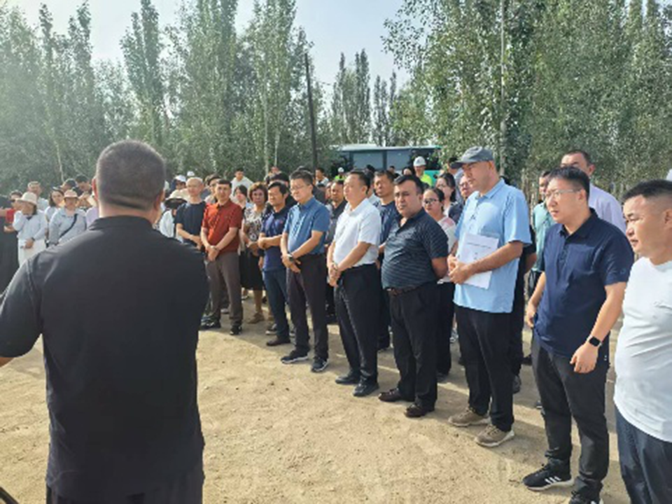 在克孜勒苏柯尔克孜自治州阿克陶县,调研团队参观了现代重度盐碱地改良示范区、耐盐碱水稻种植基地等,并与种植大户和基地负责人进行了现场交流。随后,调研团队参观了农业产业园区,深入了解了阿克陶县农业发展的艰辛历程,深刻认识到新疆盐碱地治理面临的挑战与难点。