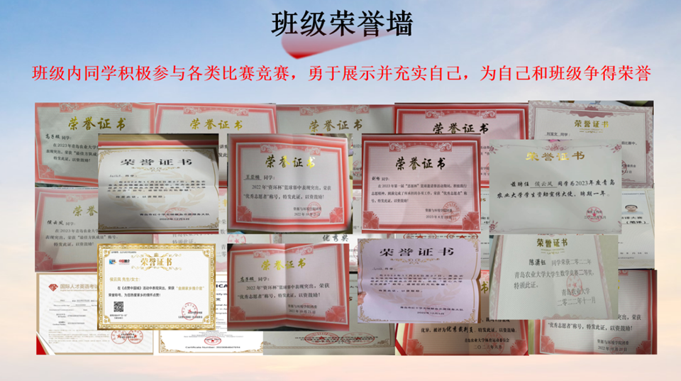 四年来,班级曾获评“校级先进班级”,班级3名党员积极发挥先锋模范作用,带领班级其他同学参与校园文化和志愿服务活动,全班累计志愿服务时长200余小时,用实际行动展现了青年的责任与担当。自全员确定考研目标起,班级全体同学的心紧紧凝聚在一起,师生上下资源共享,形成“全班一盘棋”的协作氛围。