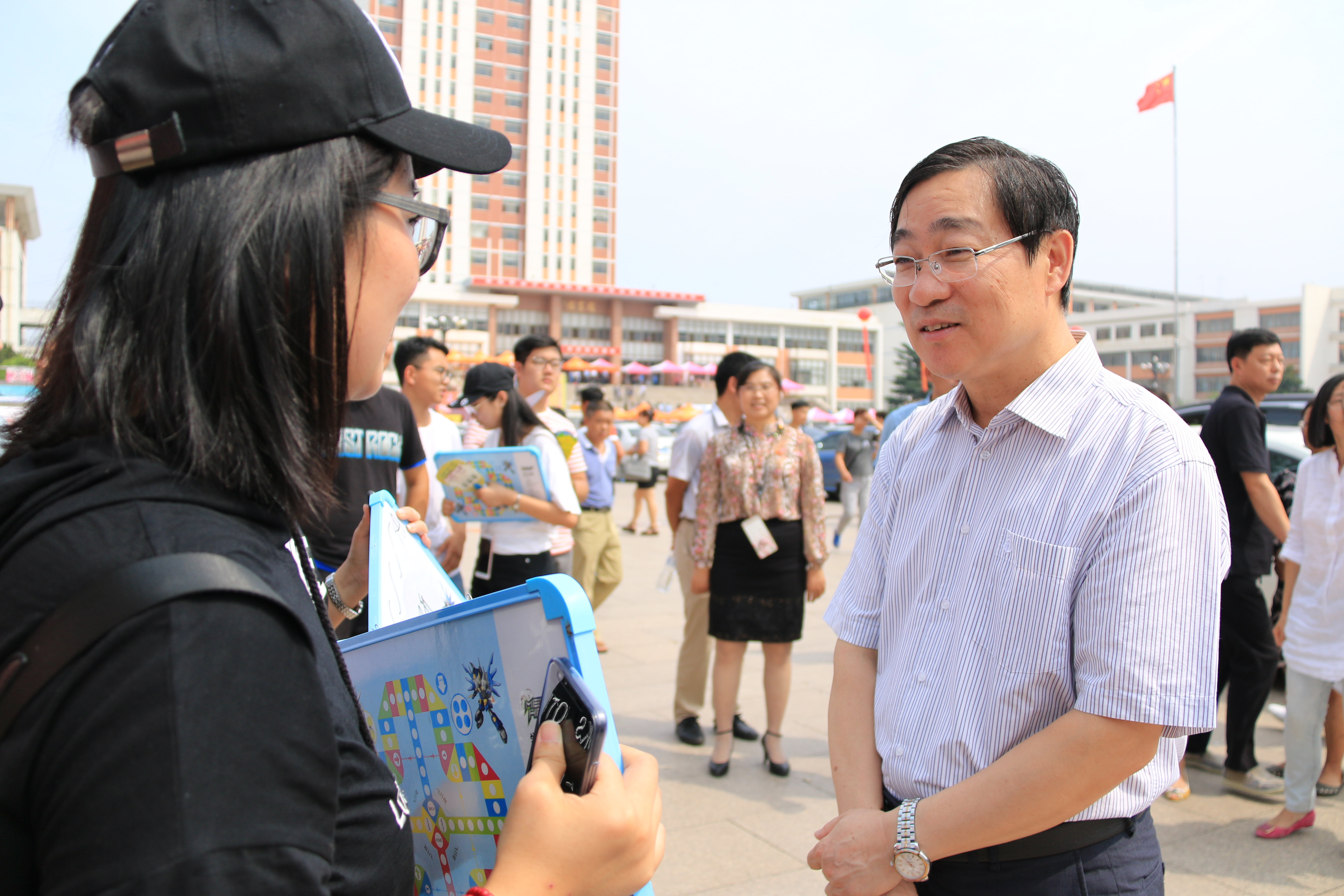 党委副书记王庆军,副董事长牟少岩、刘春霞细心地询问了新生报到及宿舍安排情况,并对公司迎新工作做了认真指导,校领导对公司梦想门等迎新特色做出了高度赞赏。