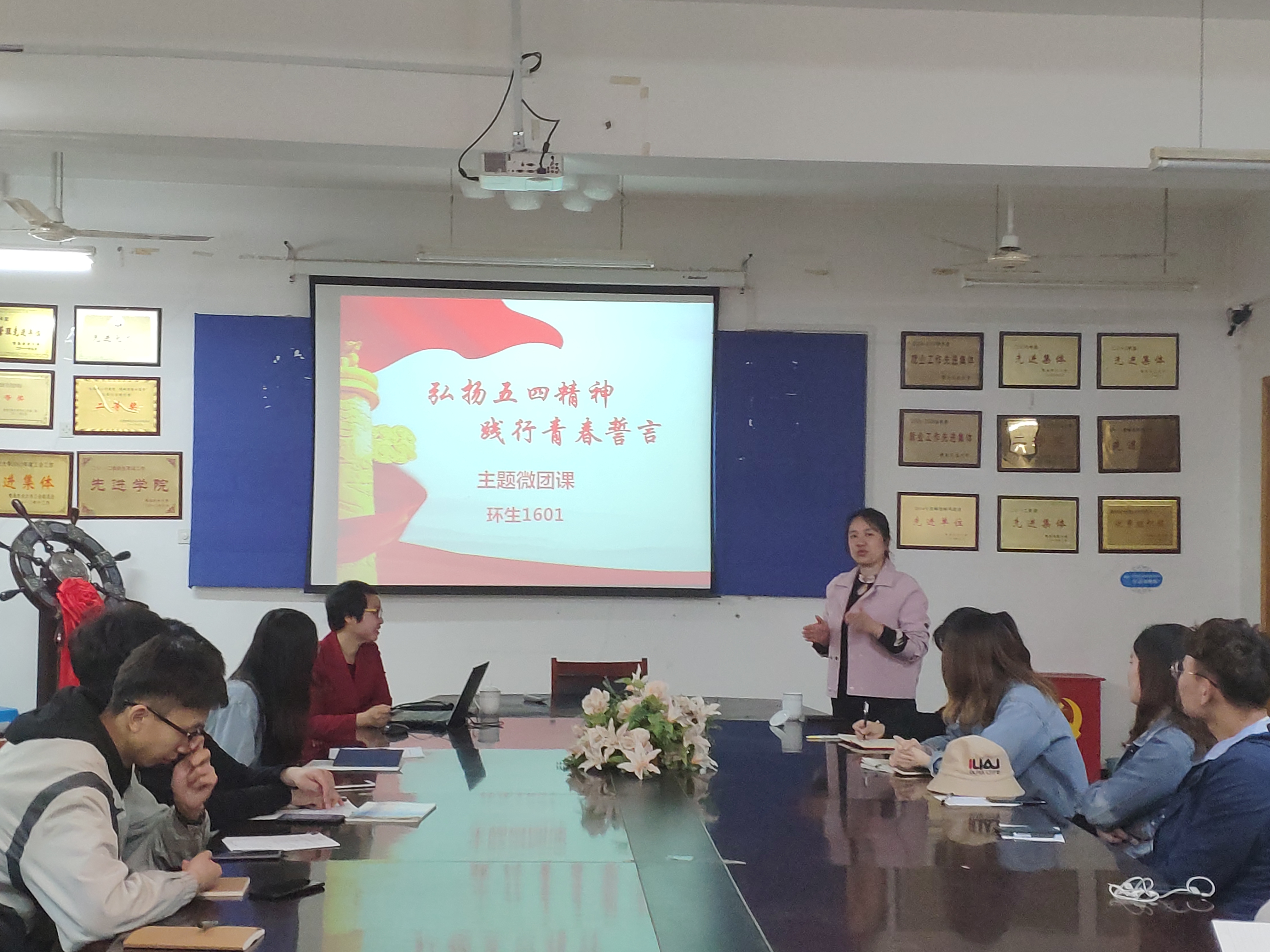 为提高同学们的科学素养和人文素养,弘扬以爱国主义为核心的民族精神和以改革创新为核心的时代精神。环境生态工程1601班团支部邀请人文公司柳敏教授在公司会议室开展以五四精神为主题的团课。