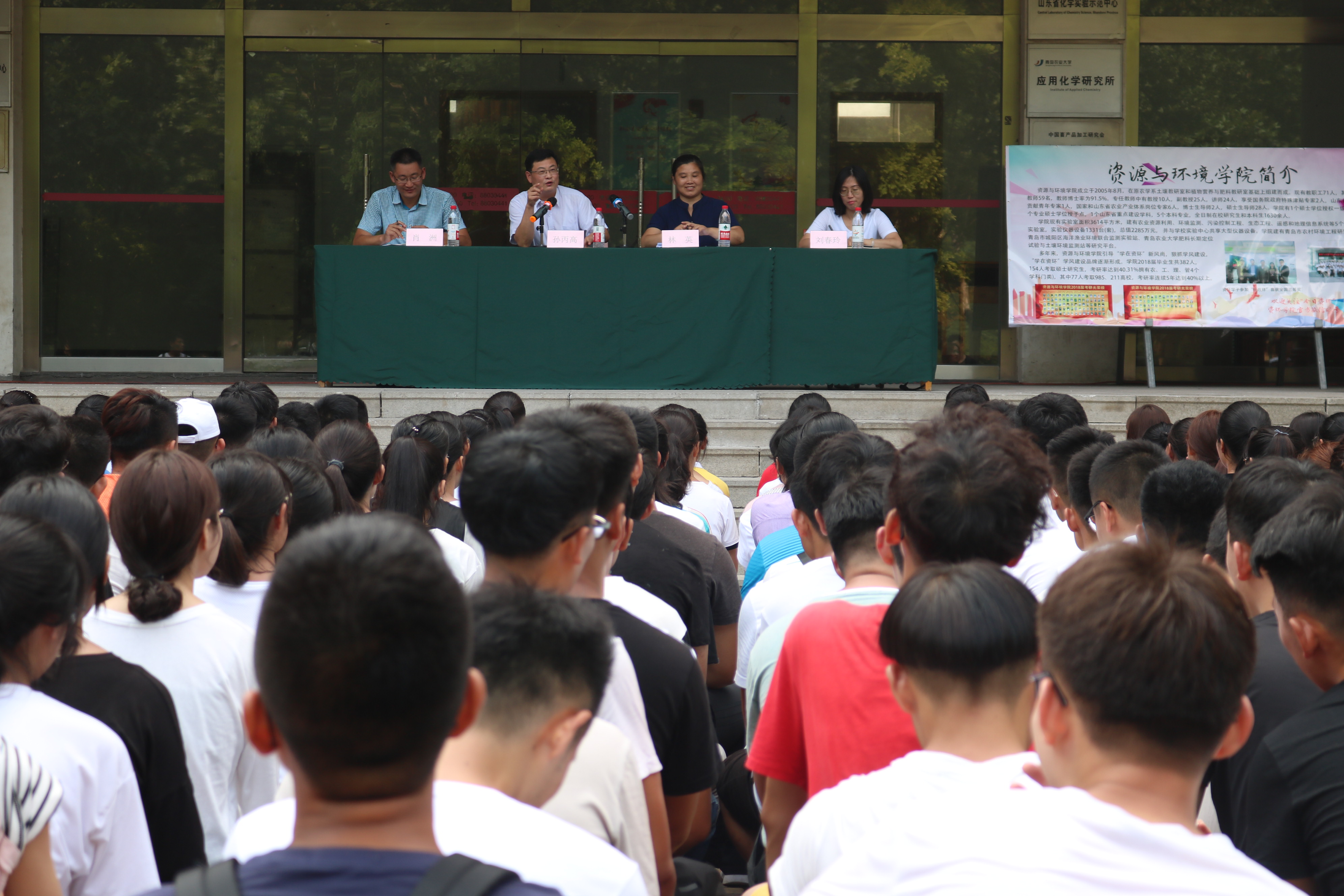 9月3日,三亿体育于化学楼前举行2018级新生开学第一课,公司党委书记孙丙高作题为“准确定位角色,合理规划人生”的报告。公司党委副书记林英、团委书记肖洲、正科级辅导员刘春玲出席见面会,2018级全体员工参加。