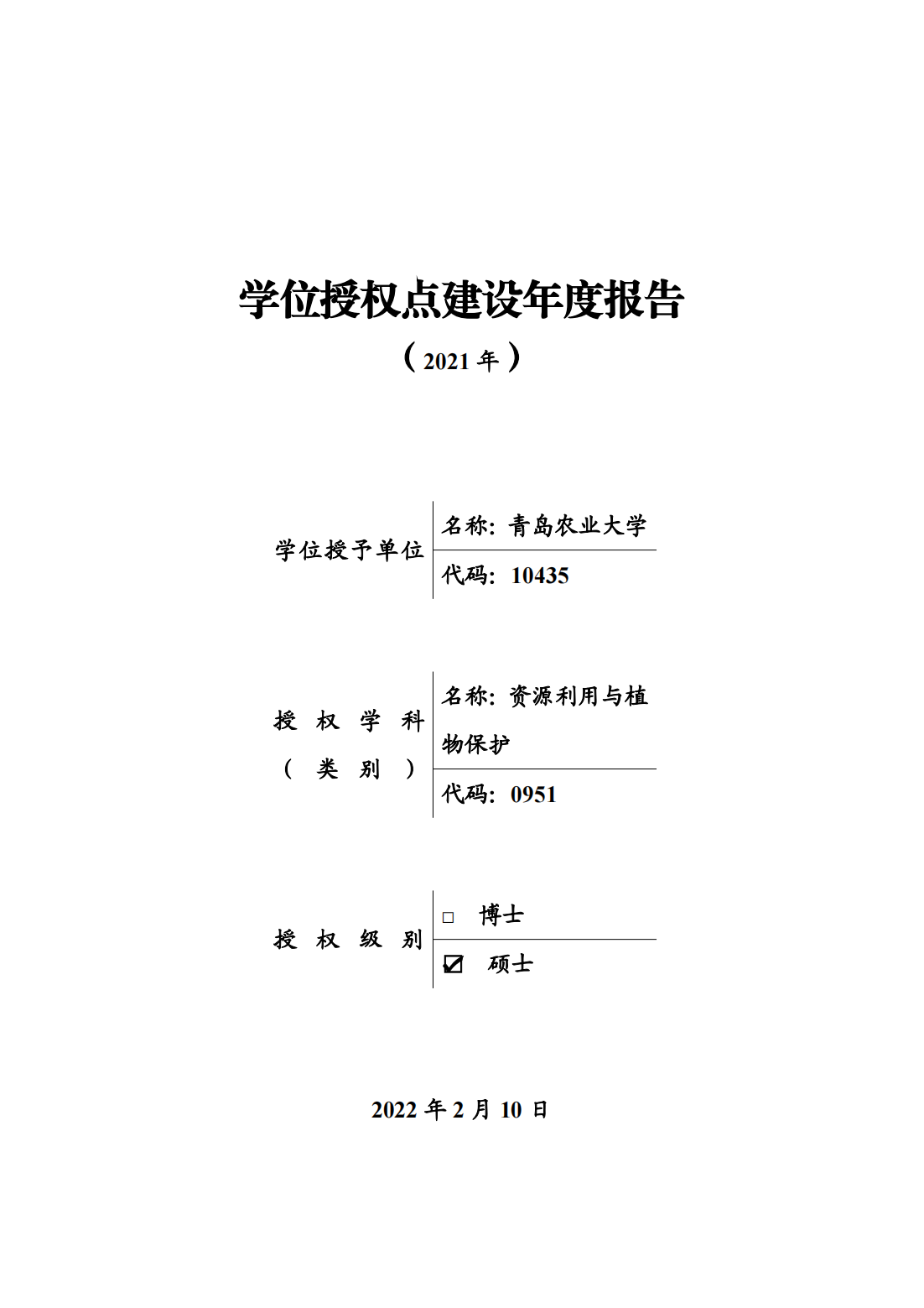 0951资源利用与植物保护-学位授权点建设年度报告(2021)