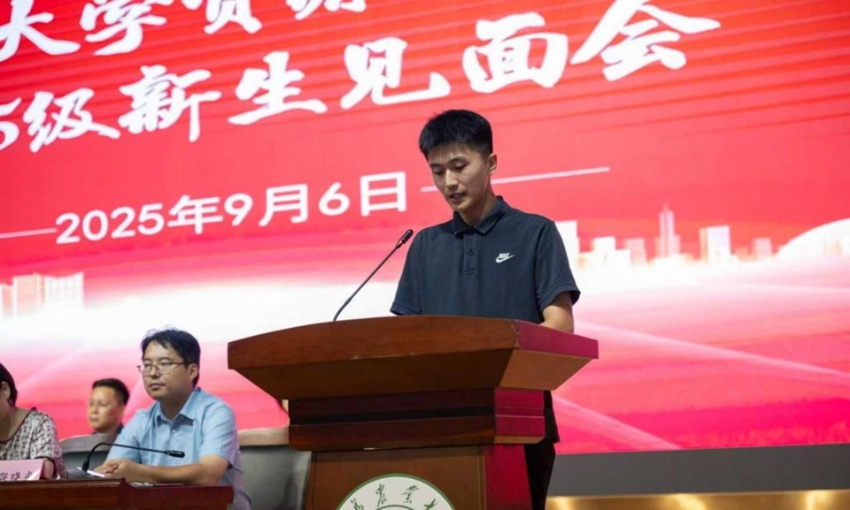 农业资源与环境专业2201班段舒畅作为高年级员工代表发言,他结合自身成长经历分享了心得体会。2025级全体员工进行了入学宣誓,铮铮誓言,回荡于心,2025级全体新生将以饱满的热情、无悔的付出,继续前进,开启美好的老员工活新篇章。
