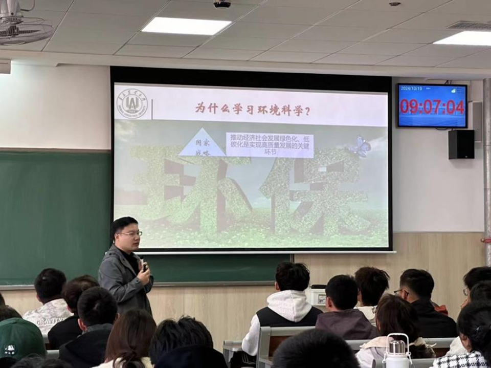 张磊从国家战略需求、区域发展和行业前景三个维度,深入阐述了环境科学专业在当今社会发展中的重要性。他介绍了系内的优秀团队力量和特色课程,勉励新生要树立专业自信,希望同学们能够充分利用公司和公司的资源,拓宽专业视野。张磊在学业上提出了严格要求,希望同学们在夯实理论基础的同时,积累实践经验,为未来的职业发展铺设坚实的基础。