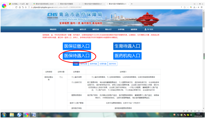 1.登录青岛市医疗保障局官网(http://ybj.qingdao.gov.cn),点击“网办大厅”。