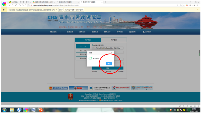 忘记密码处理方法:点击“找回密码”,根据系统提示进行密码重置;或到参保所在医疗保险经办机构街道劳动保障中心申请密码初始化。